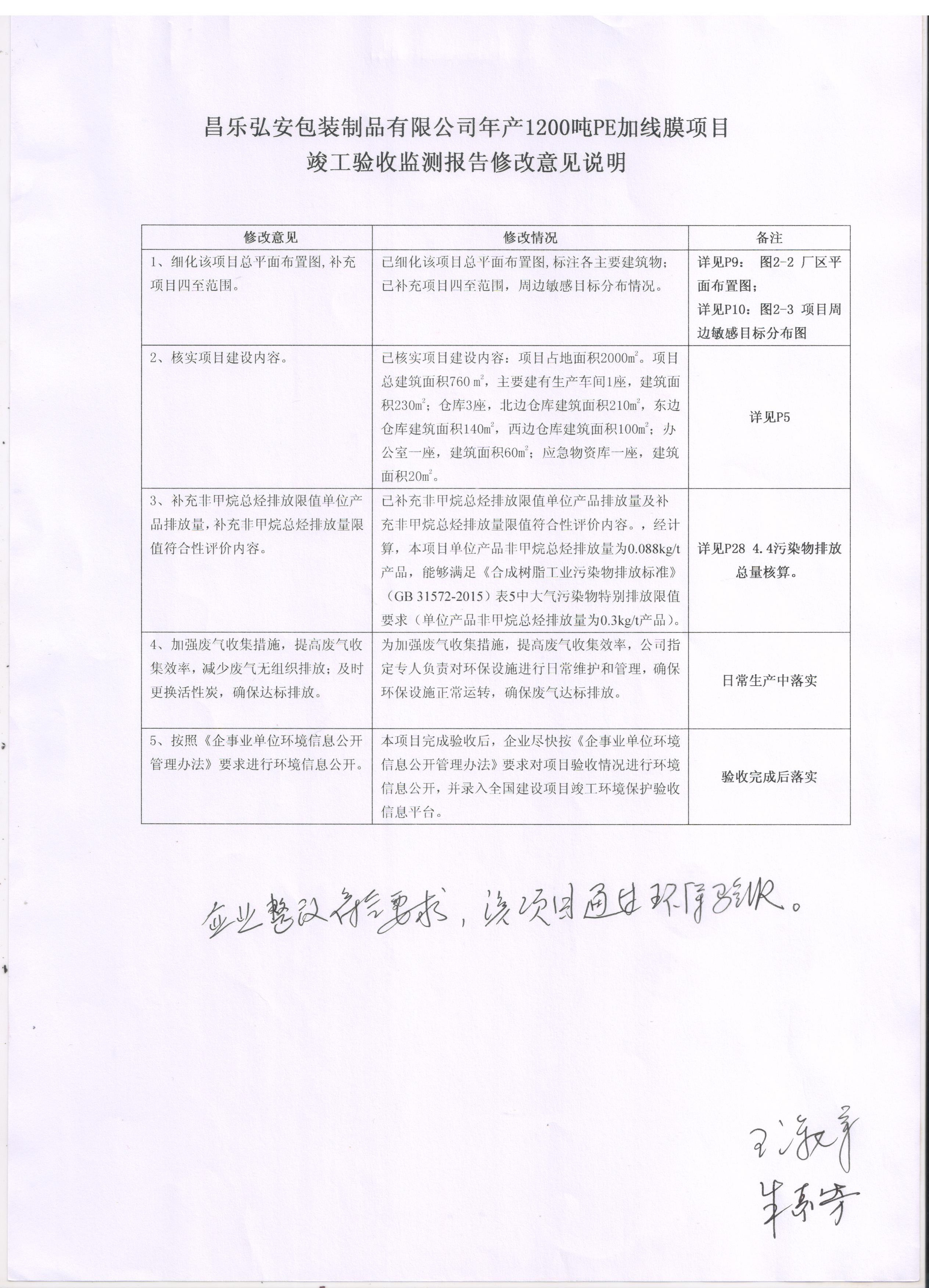经认真研究讨论形成验收意见,并提出整改要求,截止2019年1月,已完成全部整改内容,经验收组查验后一致同意本项目通过建设项目竣工环境保护验收。现将该项目验收意见予以公示。